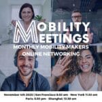 Meet the industry professionals every first Tuesday of the month at Mobility Meetings – Online Networking on November 4th.